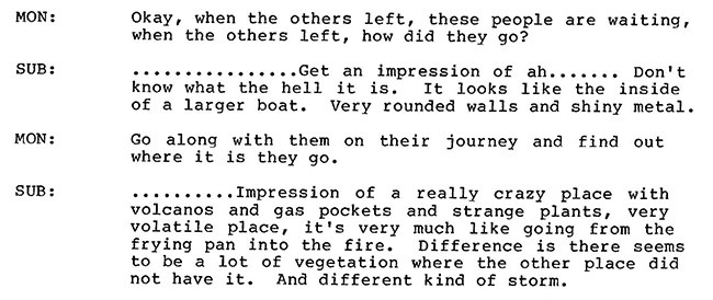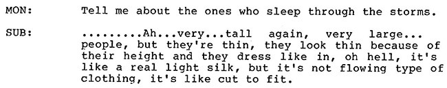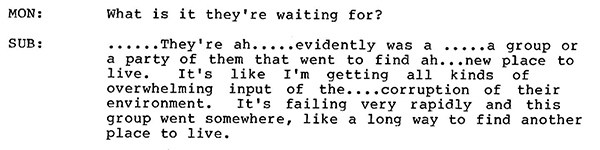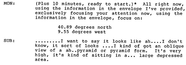 The body of the CIA document (page 3 to 9) is a transcription of the responses offered by the remote viewer (referred to as SUB) to the inquirer (referred to as MON).