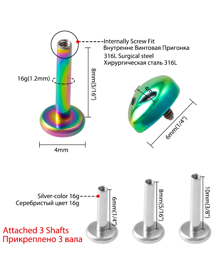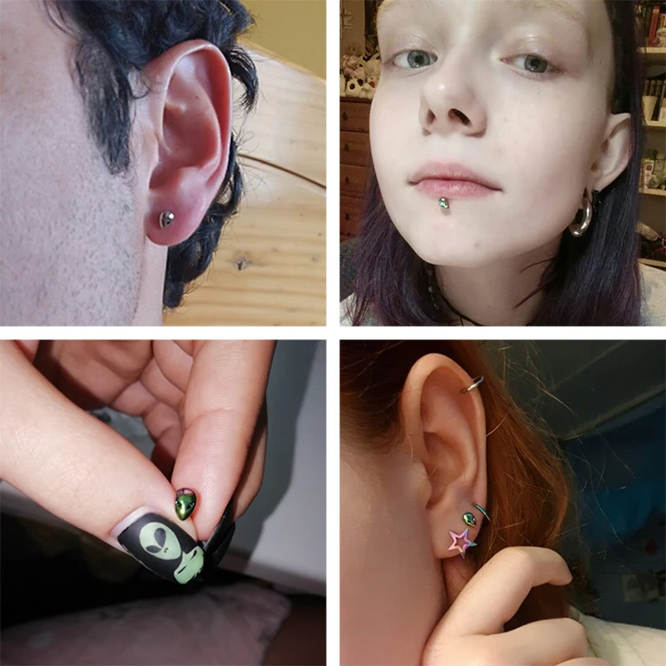 1PC Sexy Surgical Steel Labret Lip Ring Monroe Studs Zircon Ear Cartilage Tragus Helix Stud 16G Ear Piercing Jewelry. Alien Head Stud. Can be used in tragus, conch, cartilage, helix, and others. 16 Gauge 1/4" Length Bar. Externally Threaded. 316L Stainless Steel Gold PVD over lead and nickel free brass with rhodium plating.