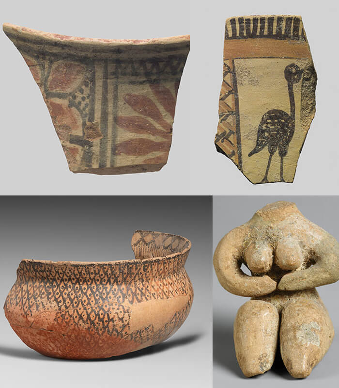 Among the numerous baked clay figurines with ornaments and lizard-like heads found at Ubaid sites, other artifacts were left behind, such as pottery with complex designs, clay tokens, pendants and stamp seals depicting various animals.