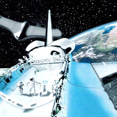 The ET was standing upright in the space shuttle payload bay having a discussion with two tethered US NASA astronauts.”I also observed on my monitors the spacecraft of the ET as it was in a stabilized, safe orbit to the rear of the space shuttle main engine pods.